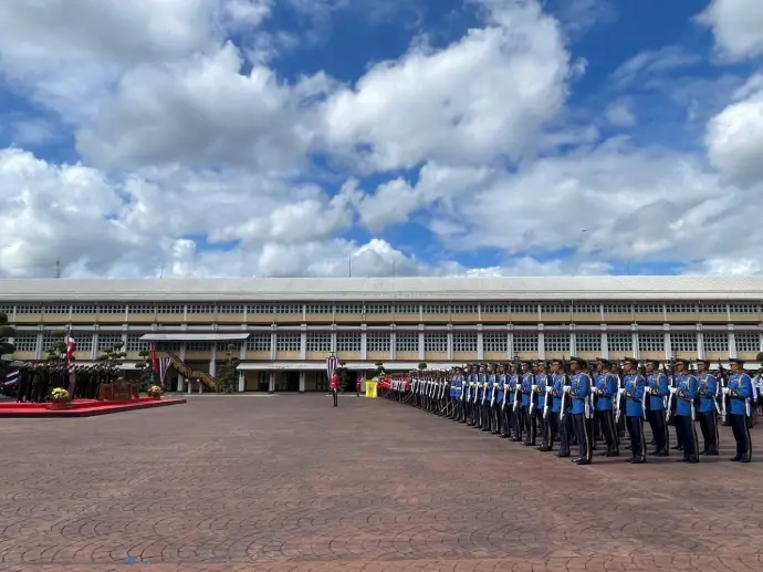 กองทหารเกียรติยศผสมสามเหล่าทัพ รับ-ส่ง หน้าที่ และมอบการบังคับบัญชาตำแหน่งปลัดกระทรวงกลาโหม